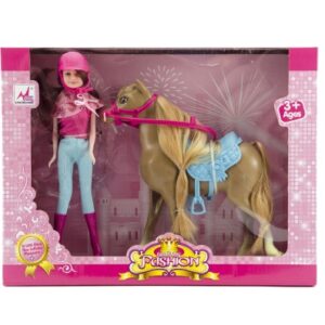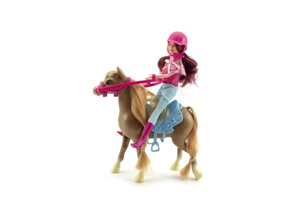 Kůň česací s doplňky + panenka žokejka 23cm plast v krabici 34x27x7cm