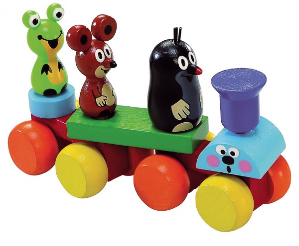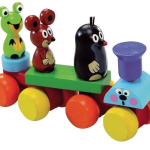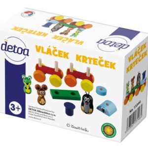 Vláček Krteček je rozkládací, lze libovolně měnit pořadí figurek. Mašinka má dva obličeje – veselý a udivený.